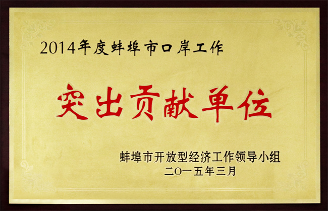 蚌埠市口岸單位突出貢獻(xiàn)單位