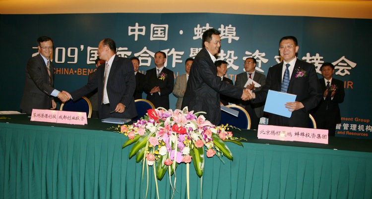 2009年6月29日,“中國·蚌埠2009’國際合作暨投資對(duì)接會(huì)”在北京隆重舉行。會(huì)議的主要目的是使世界了解安徽蚌埠,促進(jìn)安徽蚌埠在更寬領(lǐng)域、更高層次上尋求國際合作,實(shí)現(xiàn)共同發(fā)展。