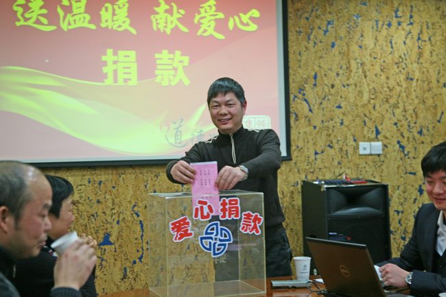 予人以愛,人予我愛。在發(fā)善心環(huán)節(jié),隨著一段溫暖的音樂響起,主持人宣讀了“送溫暖獻愛心”捐款倡議書,倡導大家奉獻自己的一片愛心?;顒拥玫搅舜蠹业臒崃翼憫?,紛紛上臺捐款,大家表示會繼續(xù)支持公司志愿服務事業(yè)的發(fā)展,將愛心傳遞的更加遙遠,讓社會變得更加友愛、和諧。