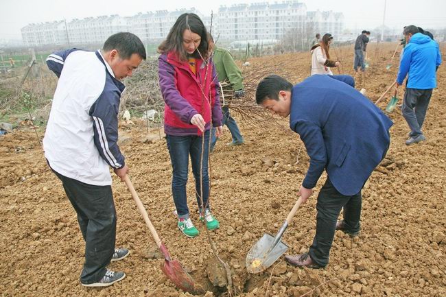 植樹現(xiàn)場,大家分工協(xié)作,揮鍬、挖坑、扶苗、填土,各個環(huán)節(jié)銜接有序,呈現(xiàn)一片熱火朝天的景象。經過兩個多小時的勞動,大家共栽下近兩百顆樹苗。大家希望種下的樹苗能夠茁壯成長,成為蚌埠的空氣凈化器和綠色的風景線