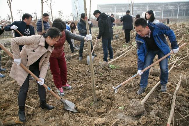 在技術(shù)人員的指導(dǎo)和示范下,大家一起行動(dòng),揮鍬鏟土、培實(shí)新土、扶苗踩壓……認(rèn)真細(xì)致地做好一道道工序,現(xiàn)場(chǎng)呈現(xiàn)一片熱火朝天的景象.經(jīng)過(guò)兩個(gè)小時(shí)的緊張勞動(dòng),共栽下近百顆樹(shù)苗。