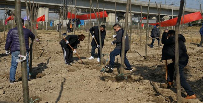 陽春三月,春意盎然。3月12日,蚌投集團(tuán)及其下屬子公司在高鐵苗木基地開展2019年義務(wù)植樹活動(dòng)?;顒?dòng)現(xiàn)場(chǎng),大家心情愉悅,熱情高漲。志愿者們紛紛拿起鐵鍬,三兩人一組,相互配合,挖坑、培土、植苗、填平,種下一棵棵樹苗,為綠化貢獻(xiàn)自己的力量。