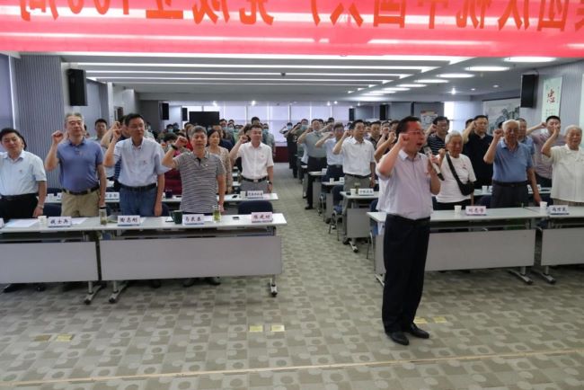 在鮮紅的黨旗下,黨員同志們莊嚴地舉起右手,重溫入黨誓詞,這是初心使命的再宣示,是接續(xù)奮斗的再出發(fā)。在激昂的樂曲中,集團黨委班子成員為5名老黨員代表發(fā)放“光榮在黨50年”紀(jì)念章、佩戴紅花。沉甸甸的紀(jì)念章不僅僅是對老黨員的最高禮贊,更是激發(fā)集團廣大黨員干部續(xù)寫時代新篇章的強大動力。隨后,陳建功為全體與會人員作了黨史專題黨課。